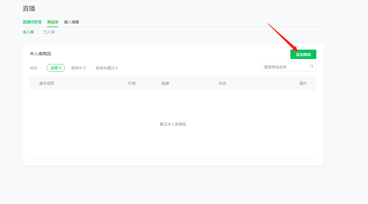 在直播页面点击商品库