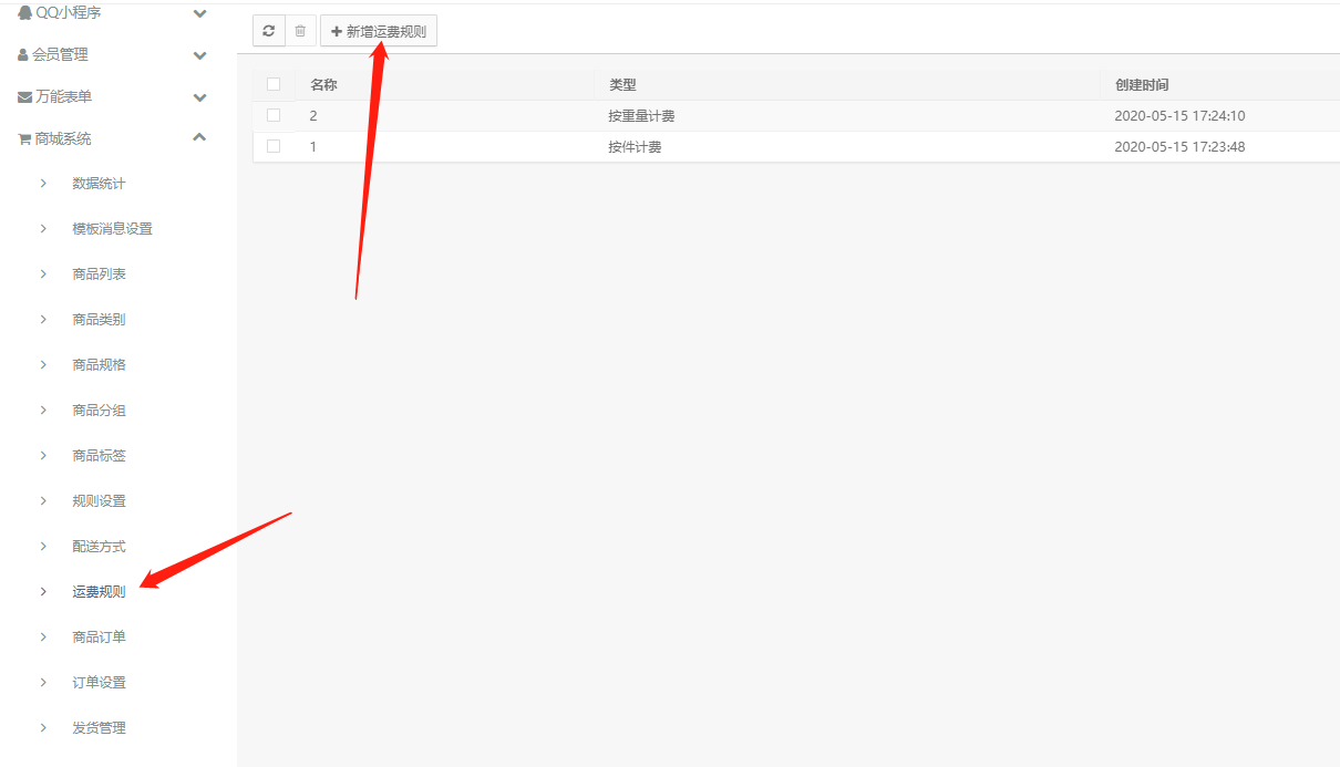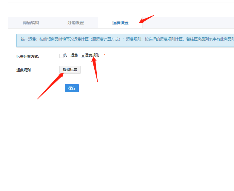 选择运费设置,运费规则,选择规则,保存即可