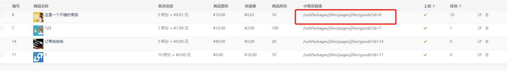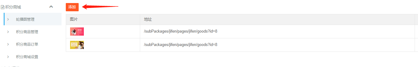 4.url地址为轮播图跳转的积分商品链接,可以从积分商品列表里面查看商品改商品的url链接
