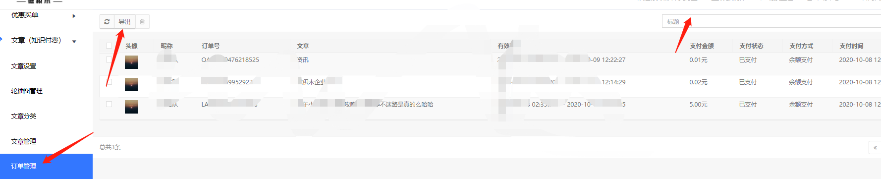 可以进行订单查看搜索和导出