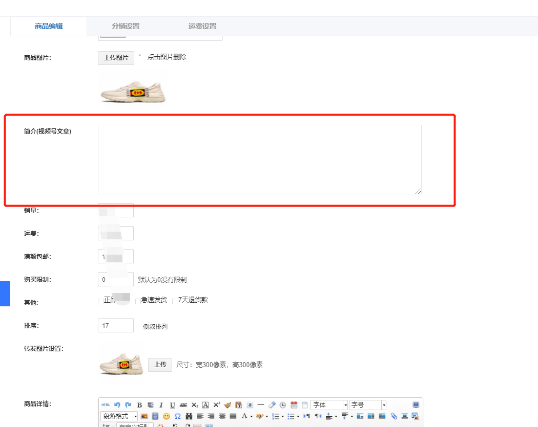 8.编辑视频号商品简介,用于视频号上展示介绍自己的产品