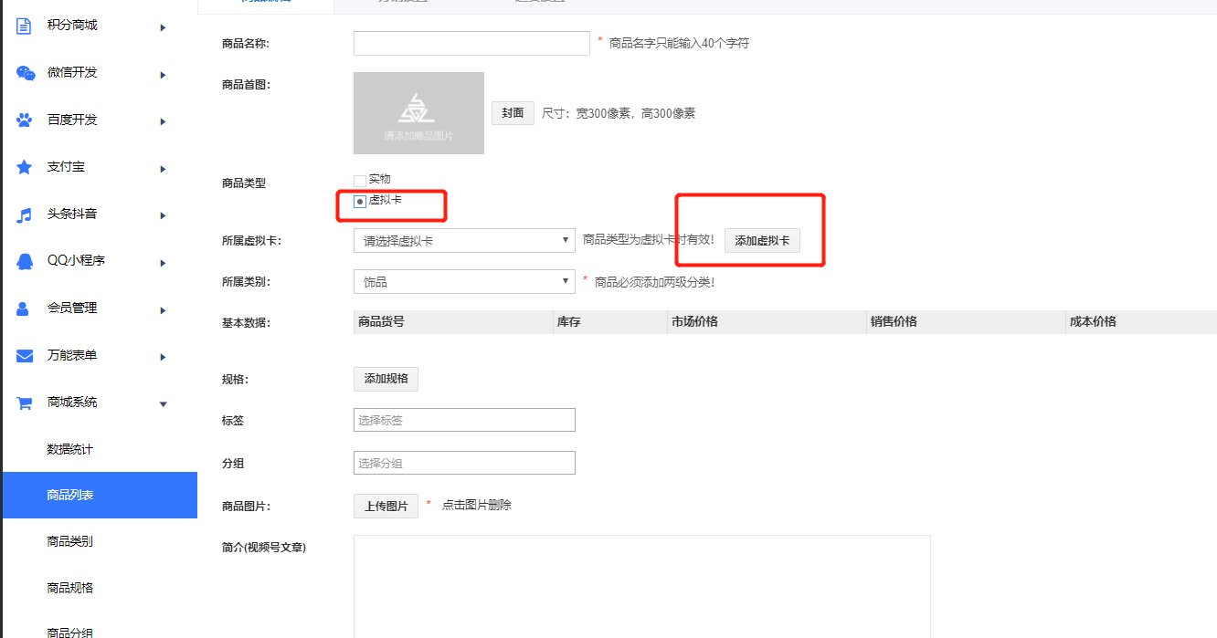 商城系统添加商品