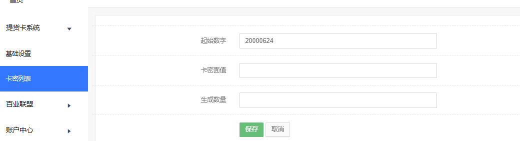 2.输入卡密生成的起始数字,按顺序生成,最多可以输入16位数字