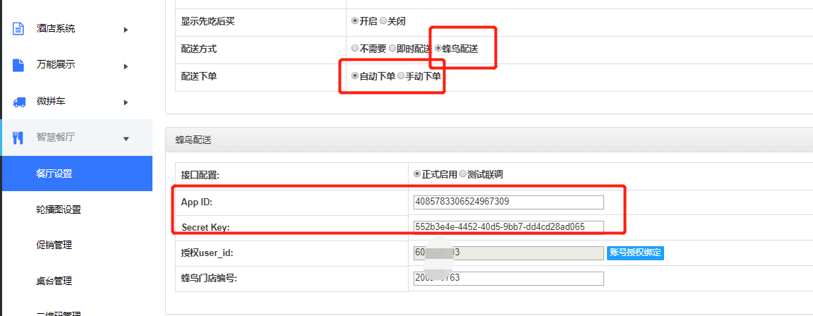自动下单是指,订单自动推送给蜂鸟跑腿配送