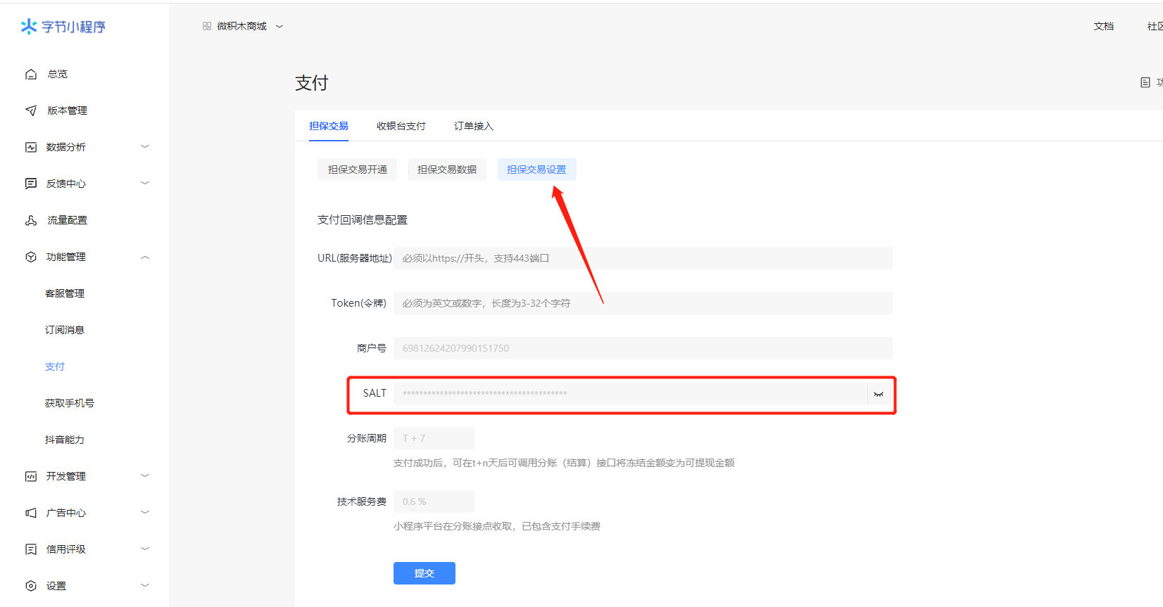 审核完成后把担保交易设置里面的SALT填入后台对应地方即可