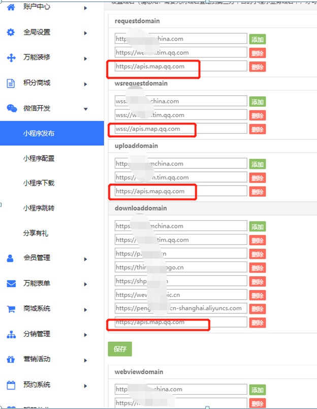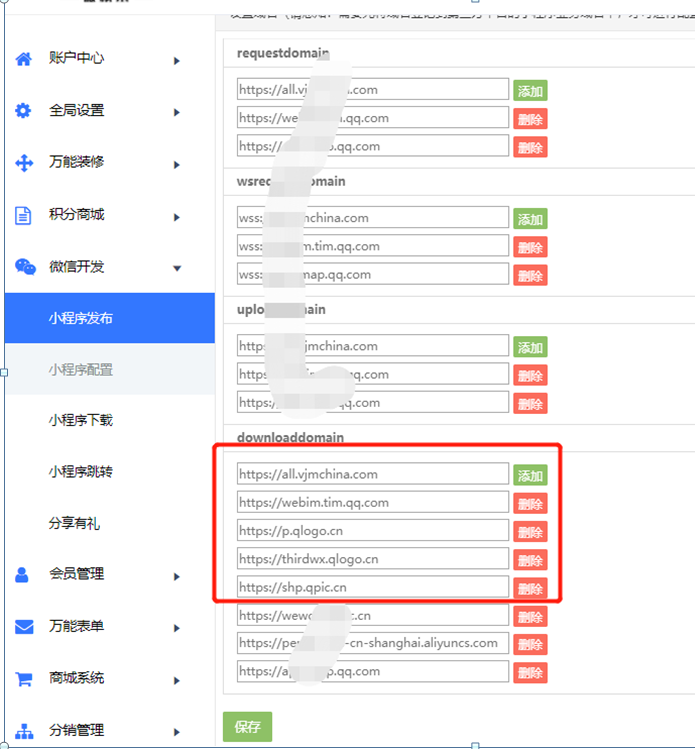 小程序需要生成海报需要配置如下域名,不添加会导致商品海报无法生成