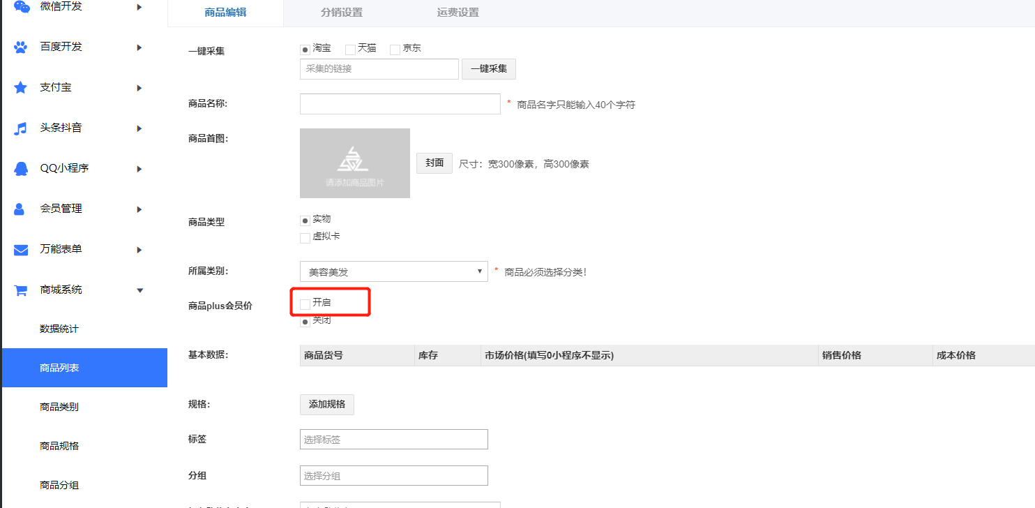 添加商品的时候开启plus会员价