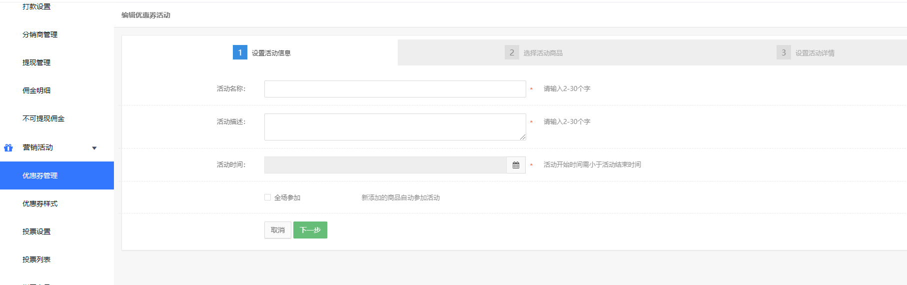 2.如果需要开通赠送优惠券需要去创建优惠券