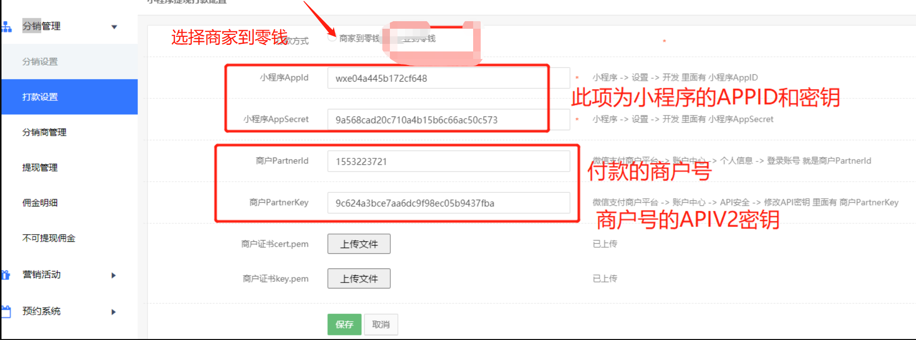 分销商品出去需要给客户提现佣金使用,然后输入小程序名称,小程序appid