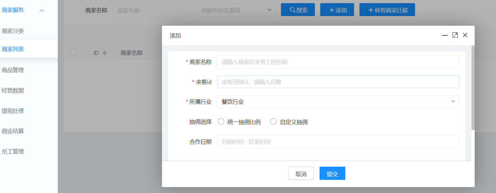 商家名称和来客 id 必须与商家来客后台的信息保持一致抽佣选择分为自定义抽佣和统一抽佣,选择自定义抽佣的商家,商品发布以后可在 cps 设置里,设置单独的商品佣金