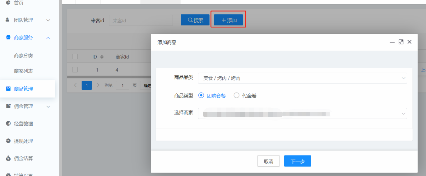 商品添加 商品管理·添加  选择完成以后点击下一步,填写对应的商品参数