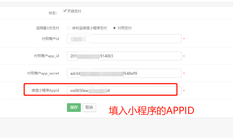 最后填入小程序的APPID即可