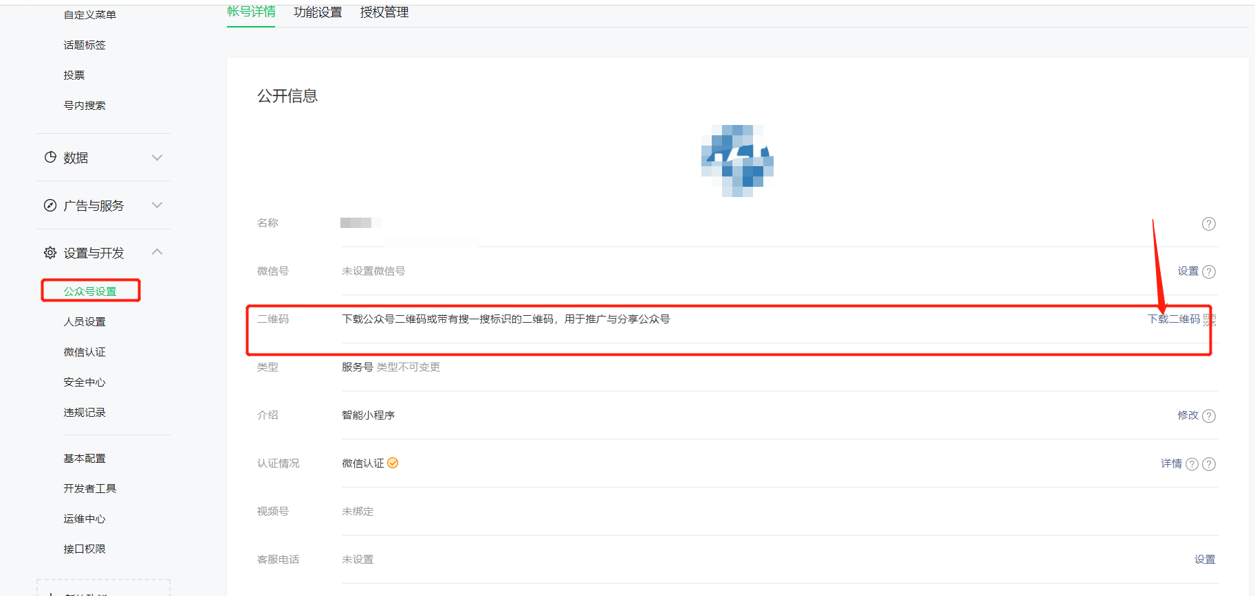 3.点公众号设置下载二维码,上传到后台对应地方