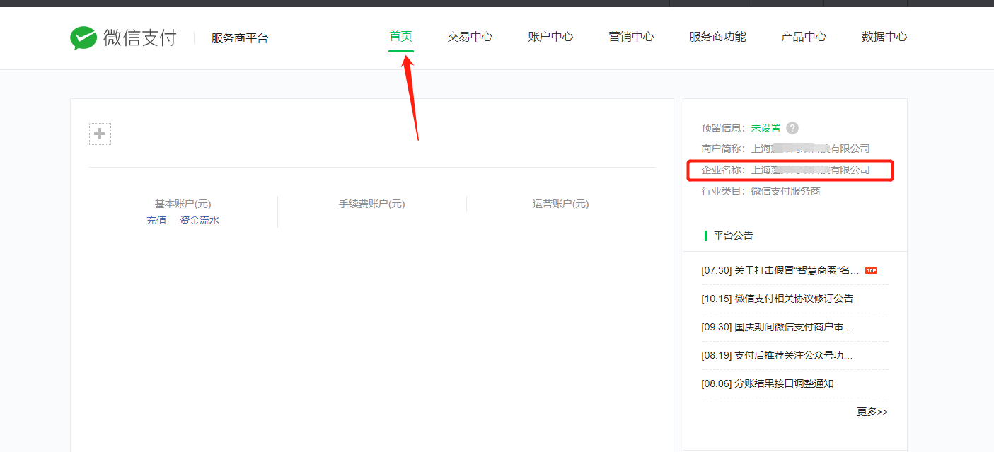 首页这个就是分账商户号商户全称