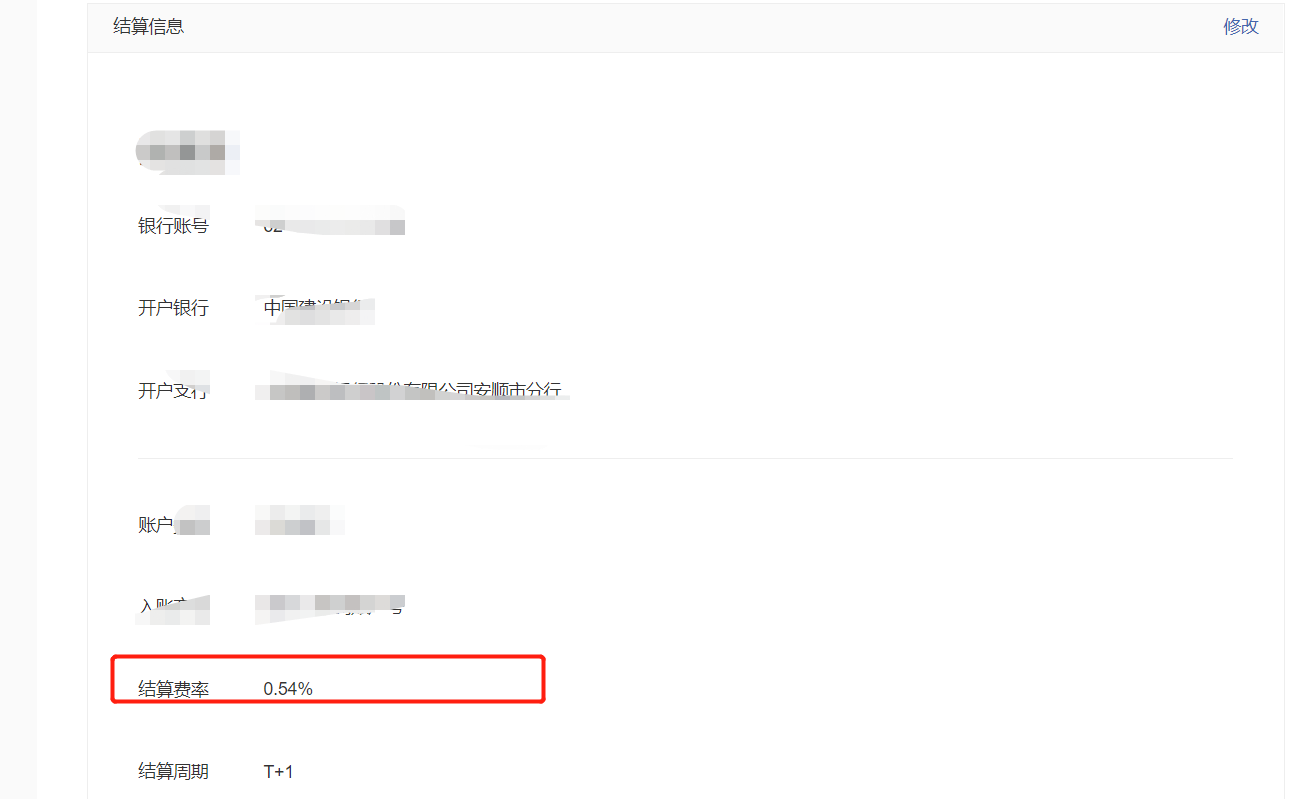 4.结算费用为服务商给商户申请特约商户的费率默认为0.6%,如果需要服务商可以修改结算费用