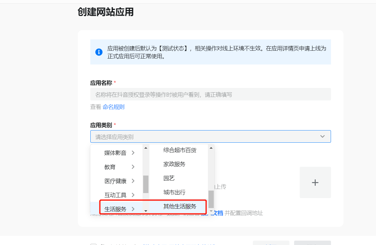 名称写自己公司名称或者品牌名字,选择生活服务,其他生活服务,上传logo