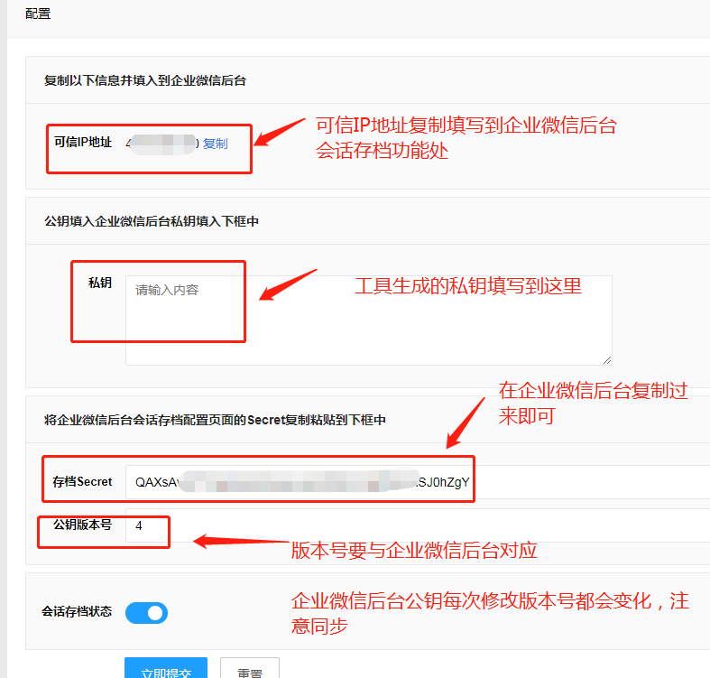 二、会话存档相关功能配置(参考下图配置即可)