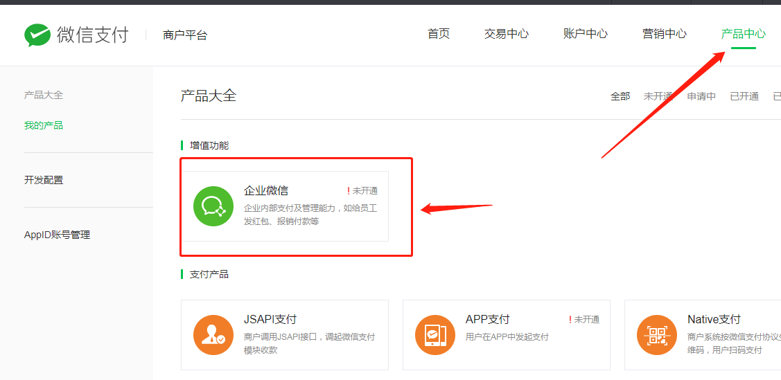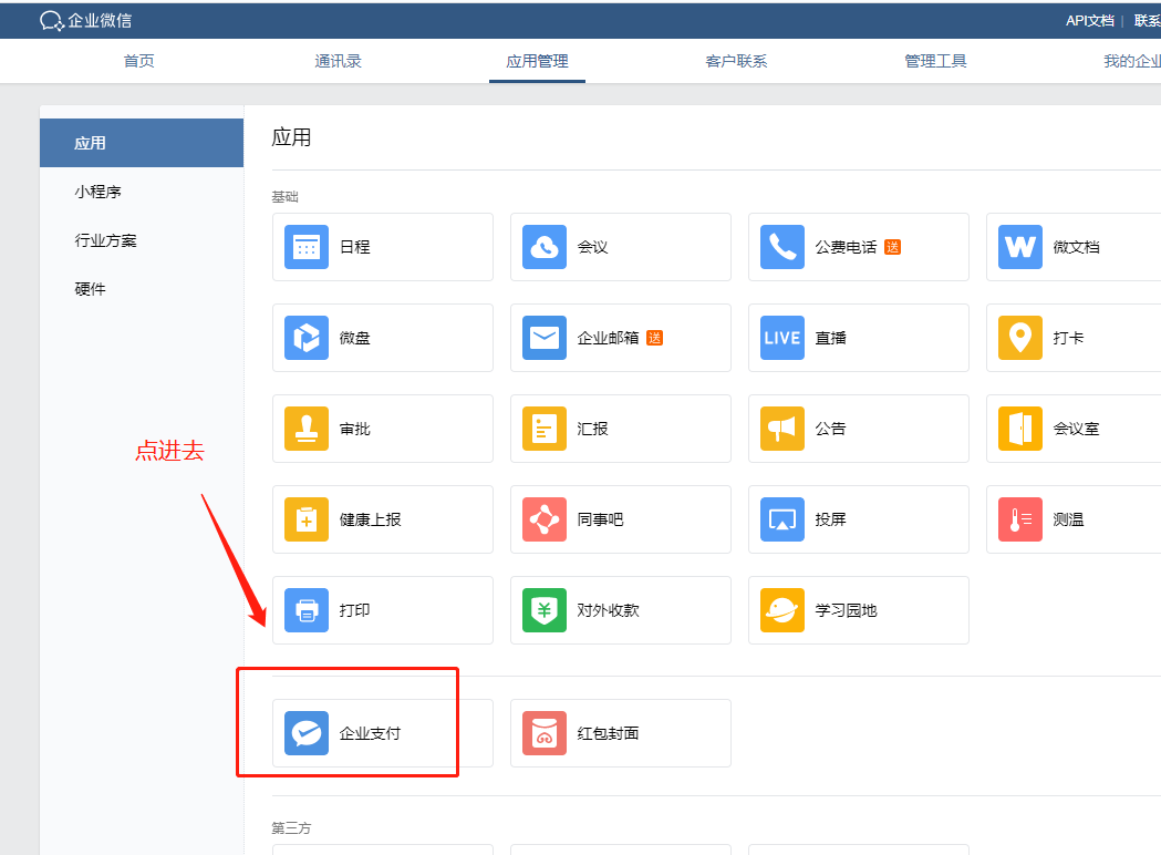 3.登录企业微信后台,找到企业支付