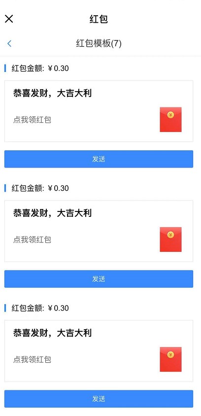 2.在后台创建红包模板,创建好以后,在手机端即可发红包