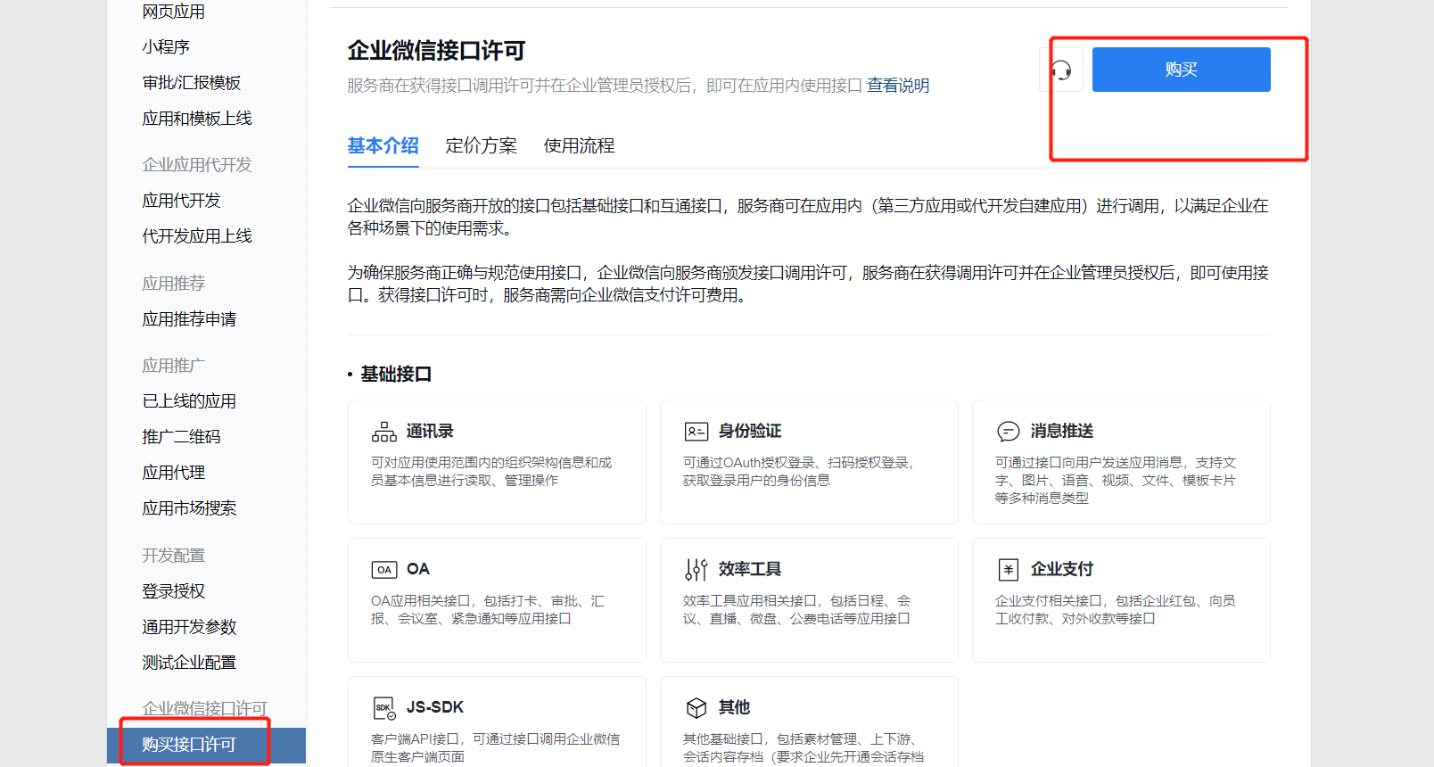 - 第六步:购买应用接口许可