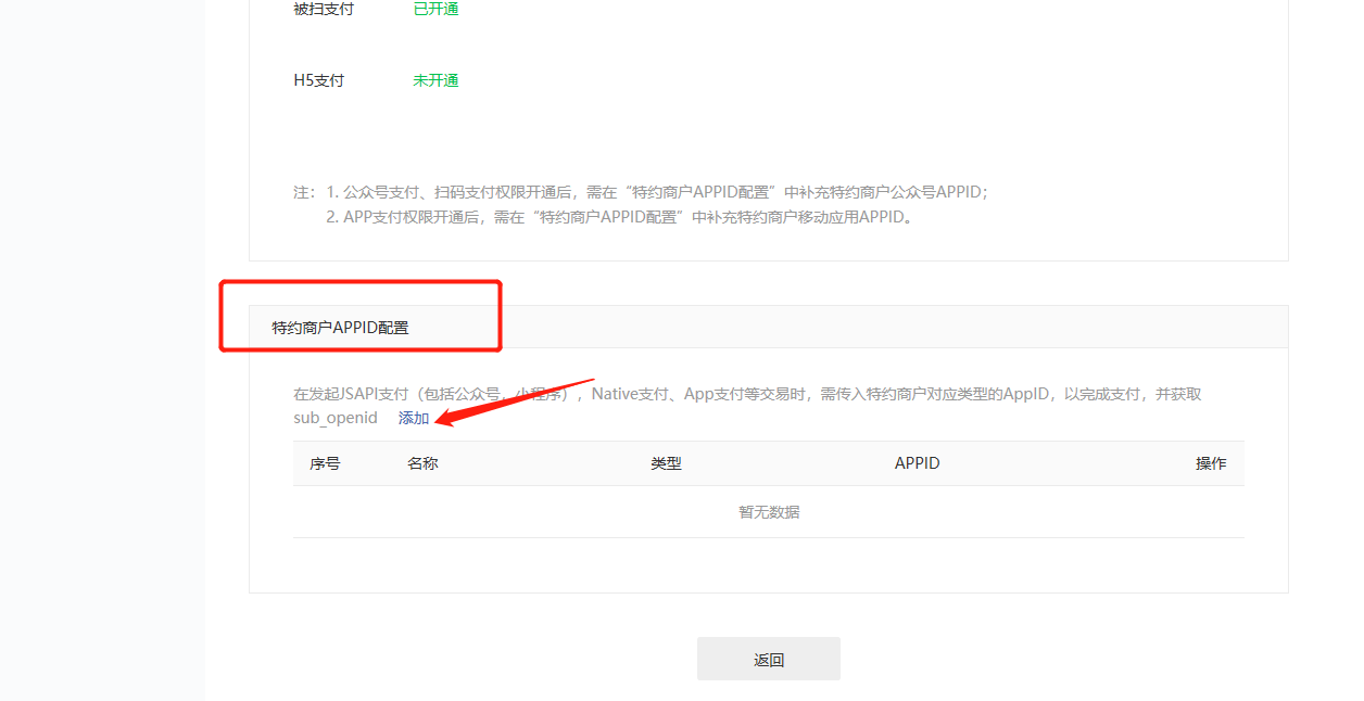 ## 继续下拉特约商户APPID配置,添加服务商的公众号服务号APPID