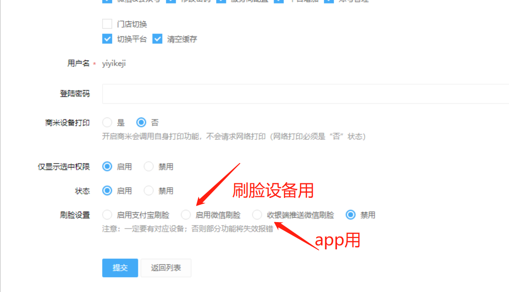 ## 3.编辑账户设置刷脸权限,APP端的两个账户分别设置权限