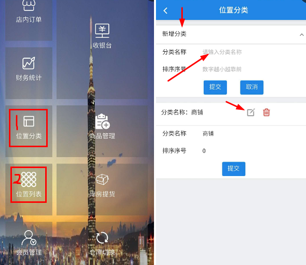 ## 五:位置管理 针对餐饮行业可以使用位置管理来管理餐厅桌台   添加好位置,点餐的时候可以选择位置