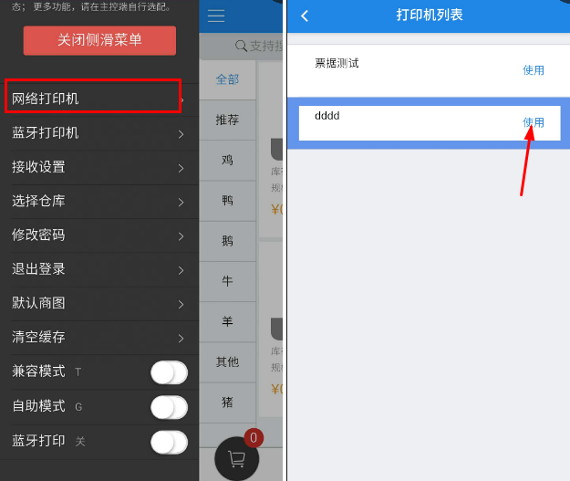 ## 七、APP收银端设置打印机 用收银端的账户登录APP  选择设置打印机 下单后点击右上角的打印机图标就可以打印了