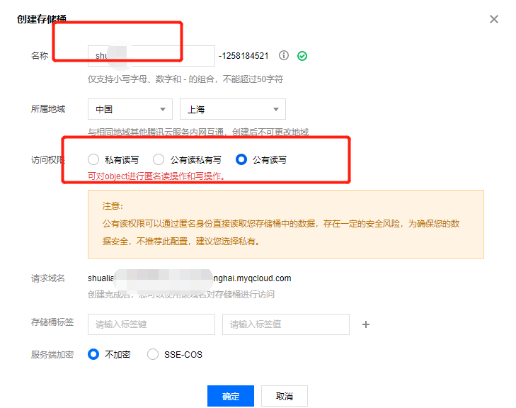 四:名字可以任意起一个,选择公共读写,不加密
