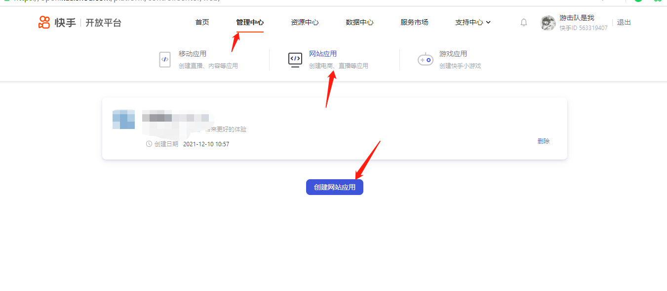 完成认证之后,点击【管理中心】-【网站应用】-【创建网站应用】-选择【内容】,输入相关信息,保存即可。