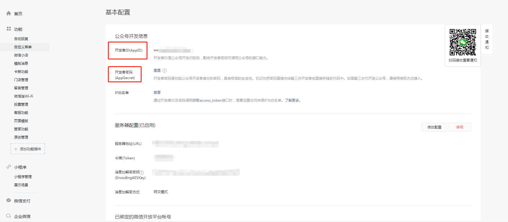 \[5\]设置成功后到申请服务商的微信公众号后台中获取公众号appid信息