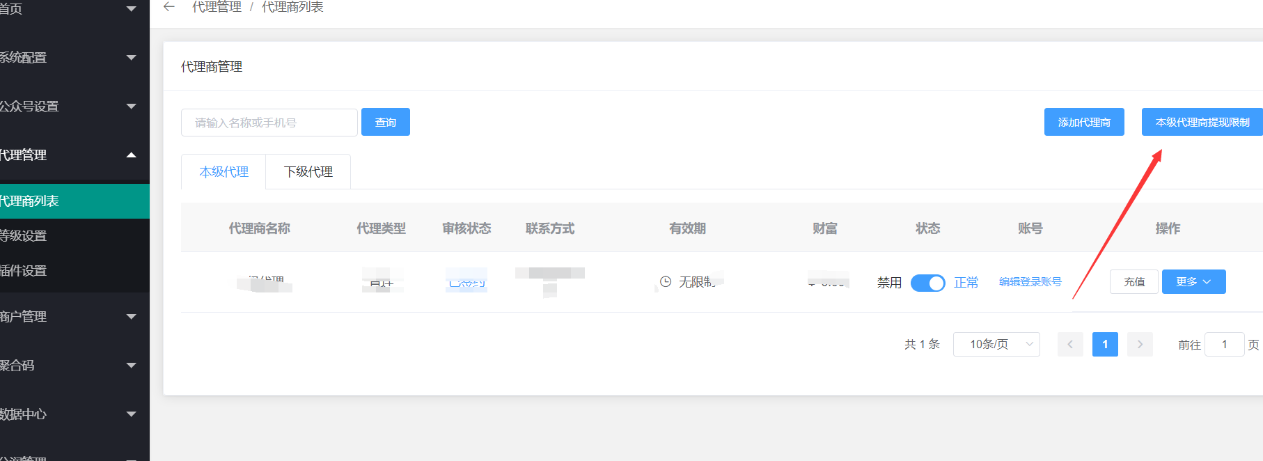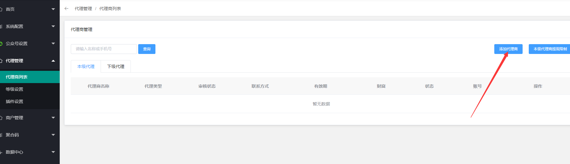进入代理商列表,点击添加代理商,可以添加下级代理商