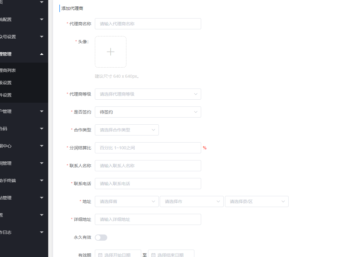 添加代理之前先设置下代理等级,然后设置给代理的分润和代理资料