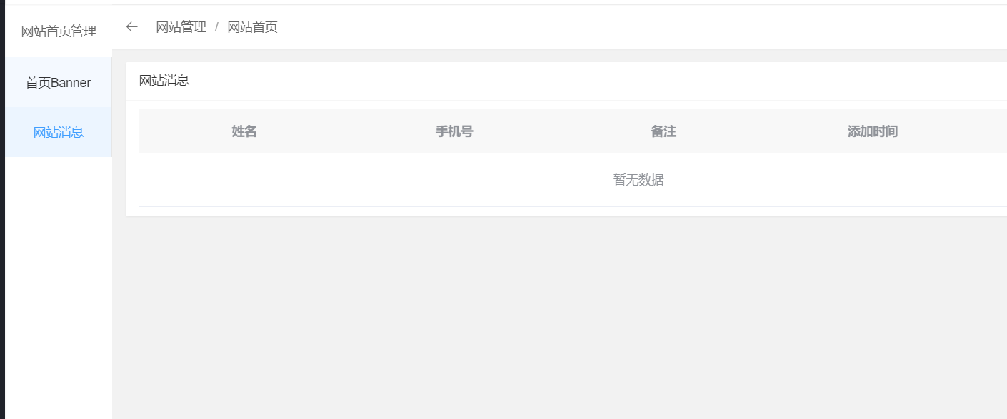 2、进入网站消息页面,可展示网站首页中输入的账户留言信息
