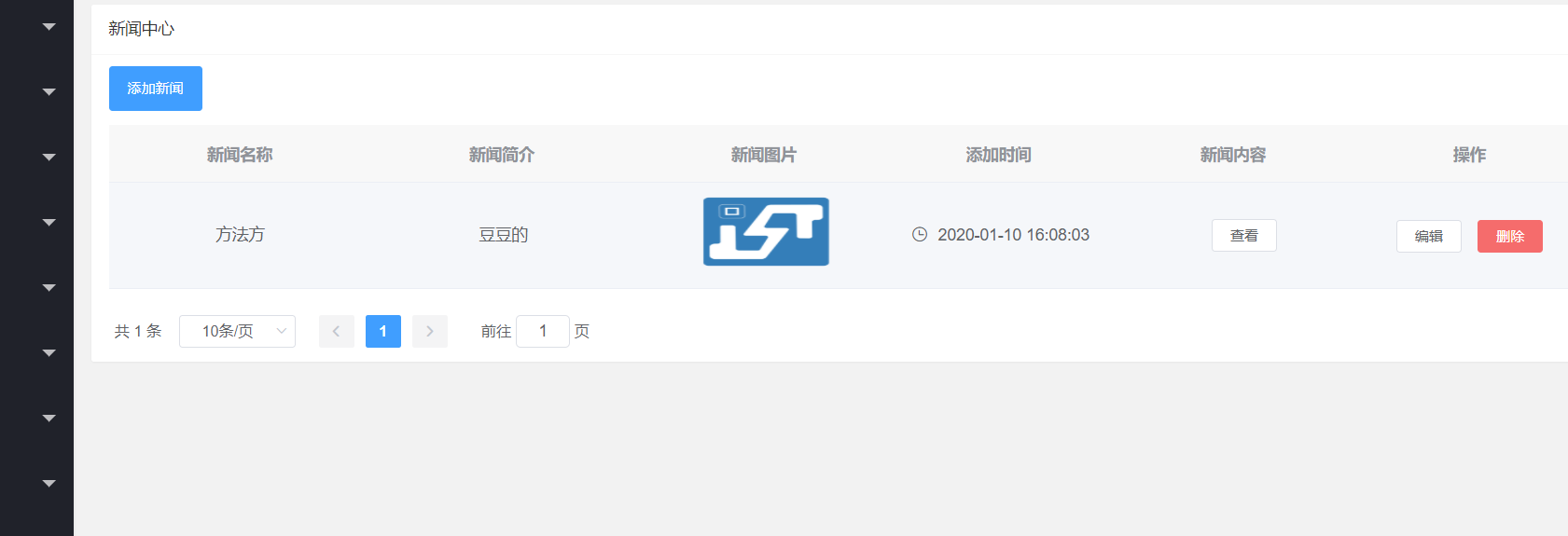 进入行业资讯页面,点击添加,可设置网站首页的行业资讯页面