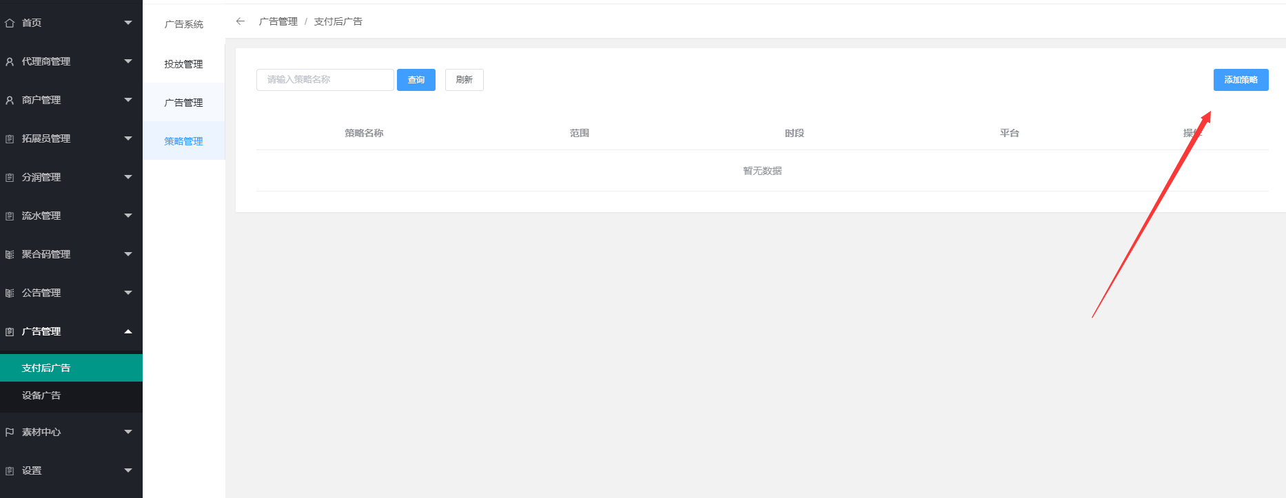 1、设置支付后广告的时候需要先将广告管理和策略管理设置好