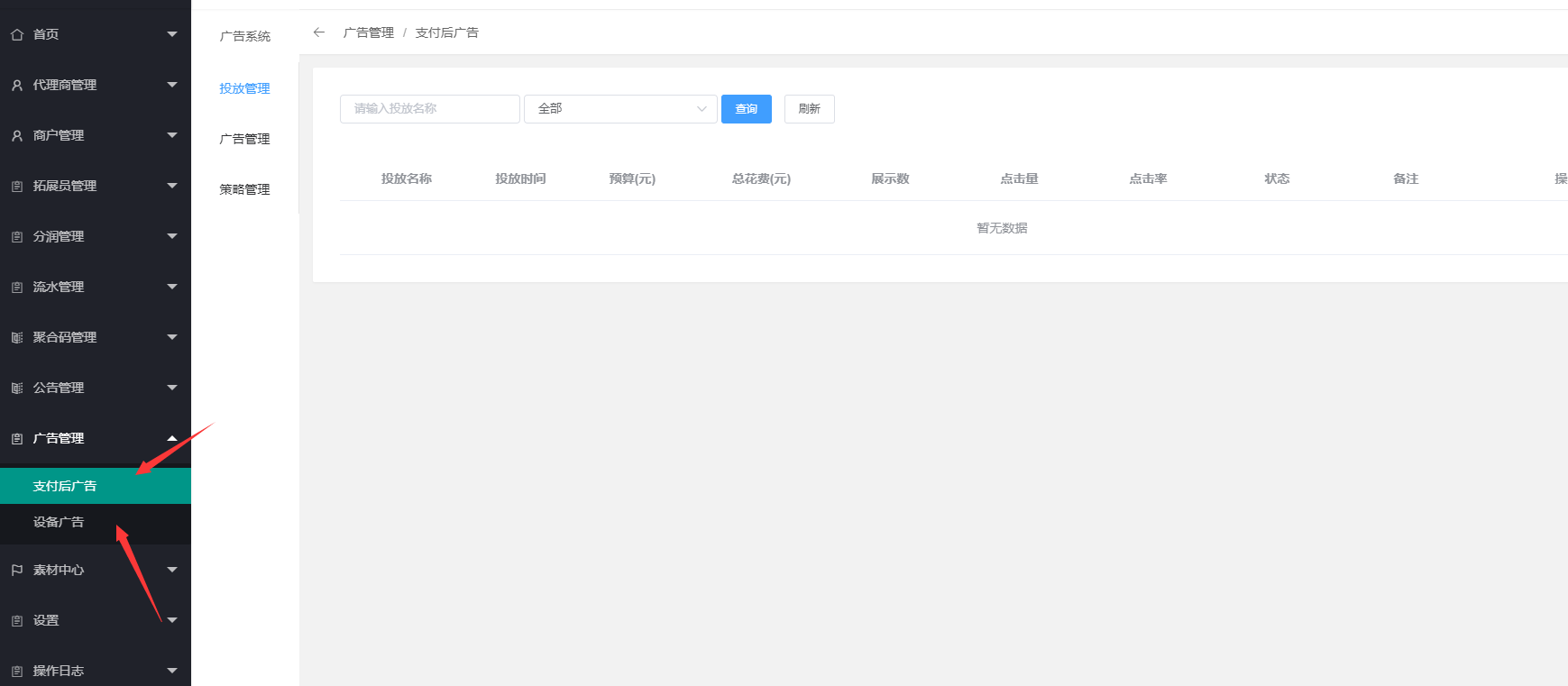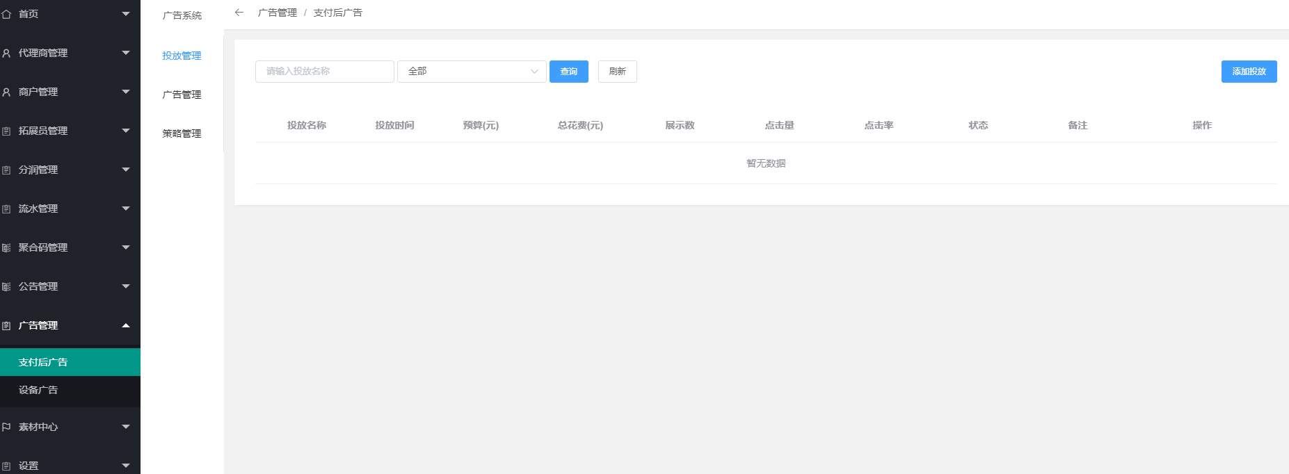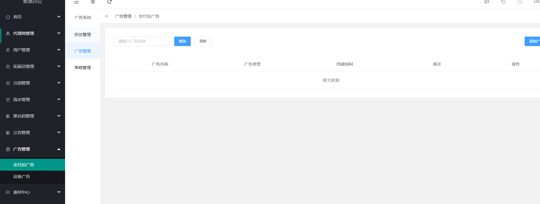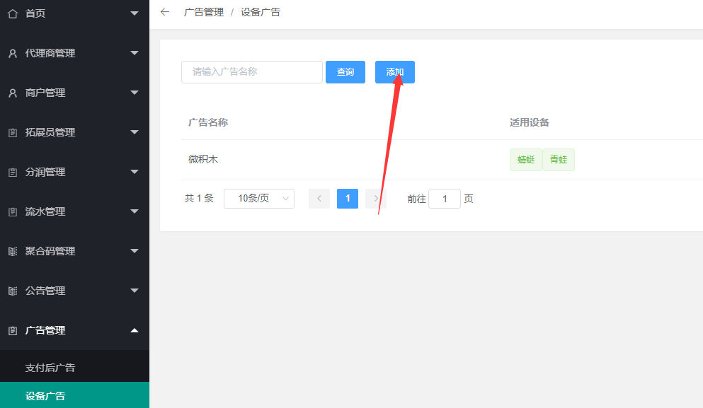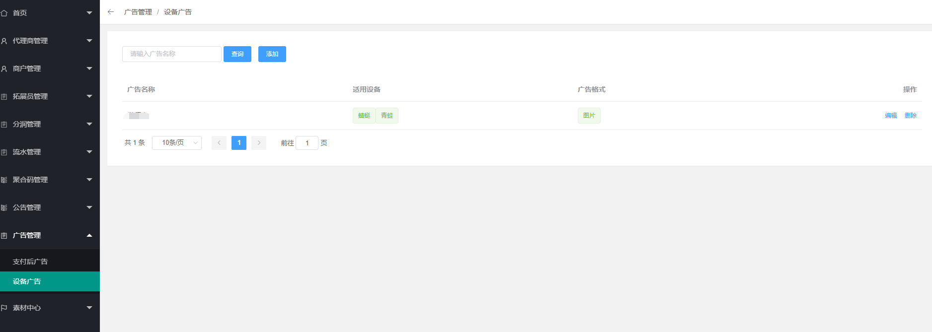 开启后登录代理商后台,支付后广告和设备广告中添加广告