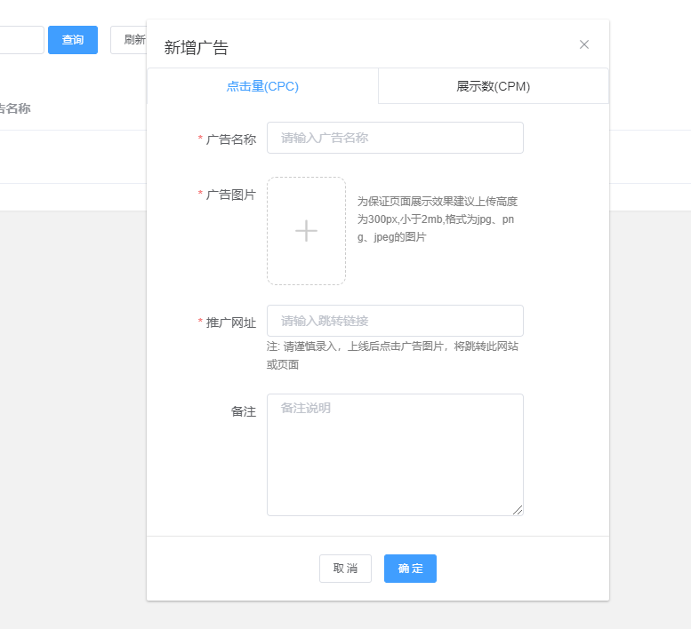 2、点击广告管理,点击添加广告,可以设置点击量和展示数