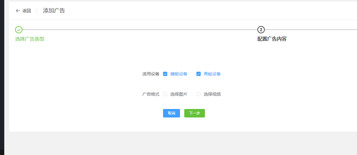 1、设备广告是指可显示在蜻蜓和青蛙刷脸机器上的广告