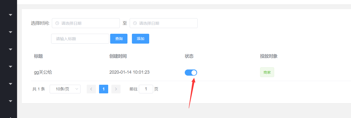 3、点击状态,开启,可在商户首页最底部和小程序助手商家端可以查看到公告信息