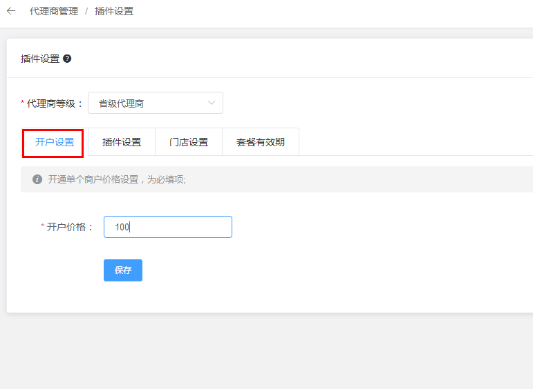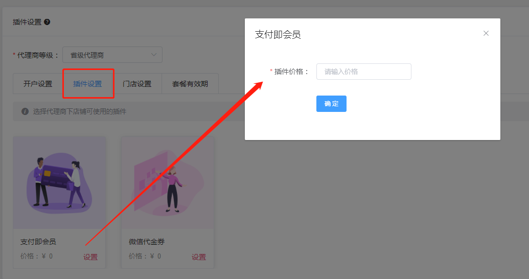 3.3、选择代理商下店铺可使用的插件,可以设置每个插件的价格