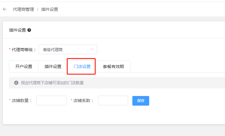 3.4、规定代理商下店铺可添加的门店数量,店铺系数是为了方便调整价格