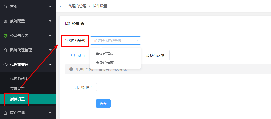 一:前置条件,先进入服务商的后台设置代理商等级