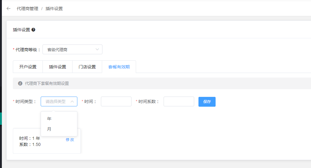 3.5、代理商下套餐有效期设置,时间系数是为了方便调整价格