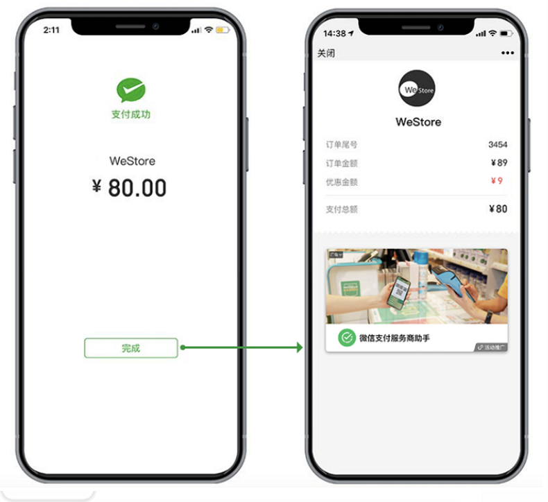 特约商户的微信聚合码支付完成后的页面将仅展示点金计划官方页面,同时发起支付的H5页面将被关闭