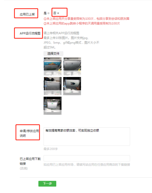 * #### 申请应用说明:有效提高商家收银效率,可实现独立收银