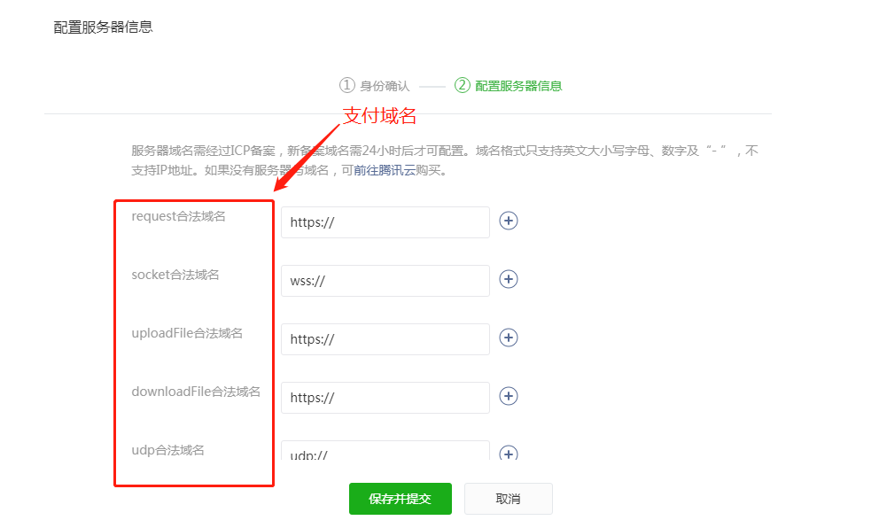 #### (1)开发 → 开发设置 → 服务器域名 → 填写支付域名。