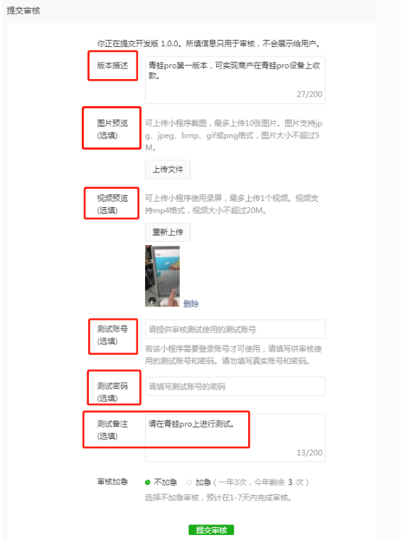 * #### (4)提交审核,确认审核成功。