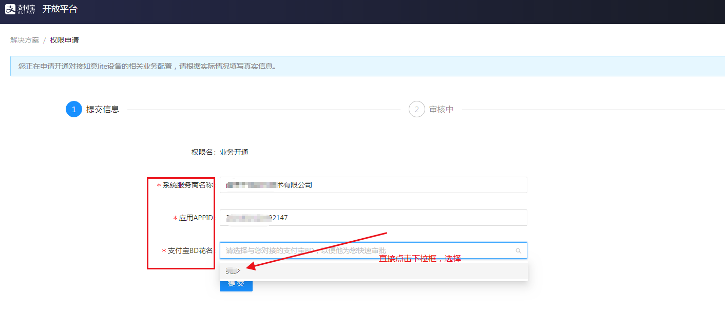 #### 1、访问链接,填写申请公司名字、网页应用的appid、下拉选择业务BD