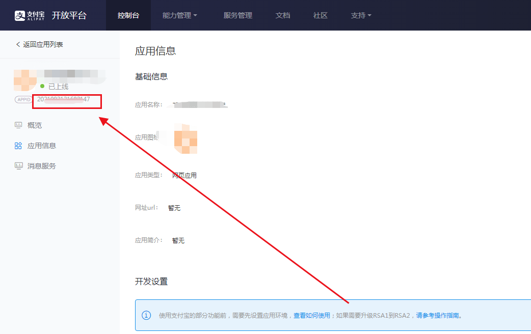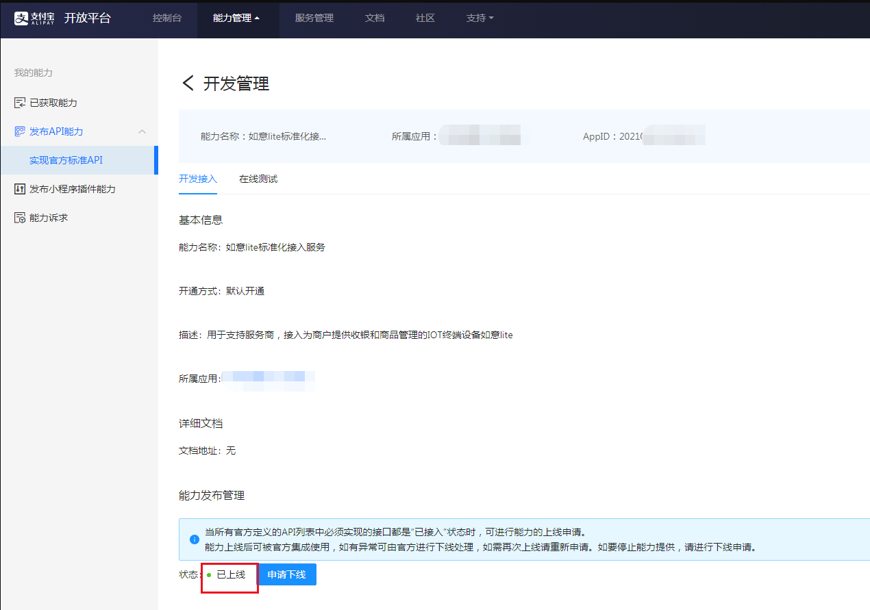 #### 6、审核通过后,即为上线状态,并把参数配置到商家后台,配置流程请参考: